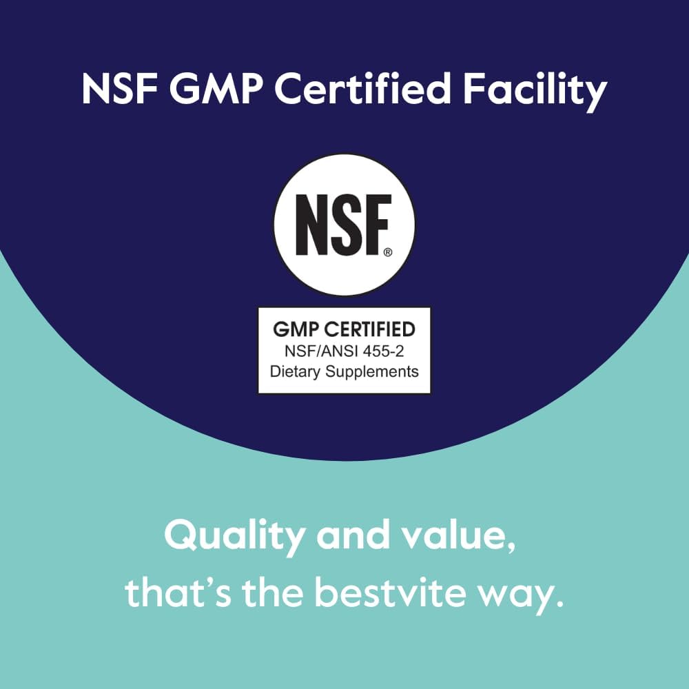 - NSF GMP CERTIFIED FACILITY: Bestvite’s facility is NSF/ANSI 455-2 Dietary Supplements Good Manufacturing Practice (GMP) certified. Earning GMP certification from NSF verifies that a manufacturing facility has the proper methods, equipment, facilities, and controls in place to produce dietary supplement products.